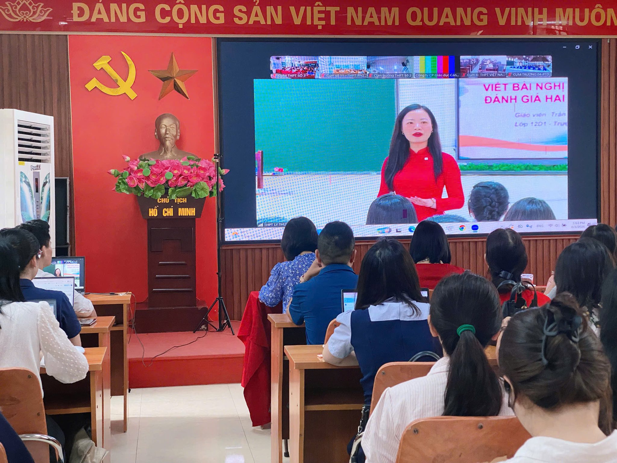 Địa điểm: Phòng họp HĐSP tầng 3 - Khu Hiệu bộ, Trường THPT Đống Đa (Điểm cầu trực tuyến kết nối với Sở GD&ĐT Hà Nội).