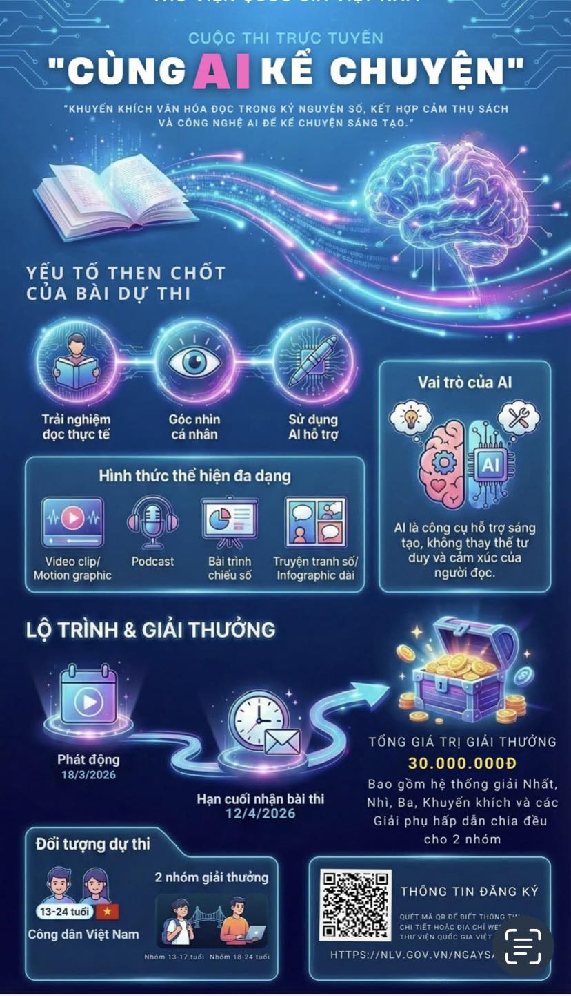 Hưởng ứng Ngày Sách và Văn hóa đọc Việt Nam 21/4, Thư viện Quốc gia phát động cuộc thi trực tuyến: “Cùng AI kể chuyện”.